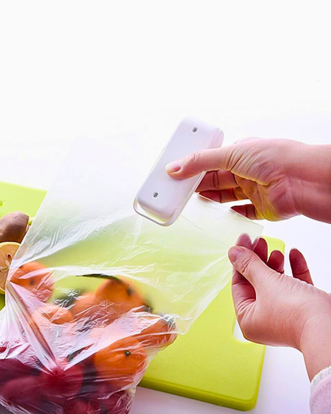 Mini aparat za zatvaranje kesa koristi toplotu kako bi hermetički zapečatio svaku kesu – čips, testeninu, pirinač, zamrznuto voće i još mnogo toga.
